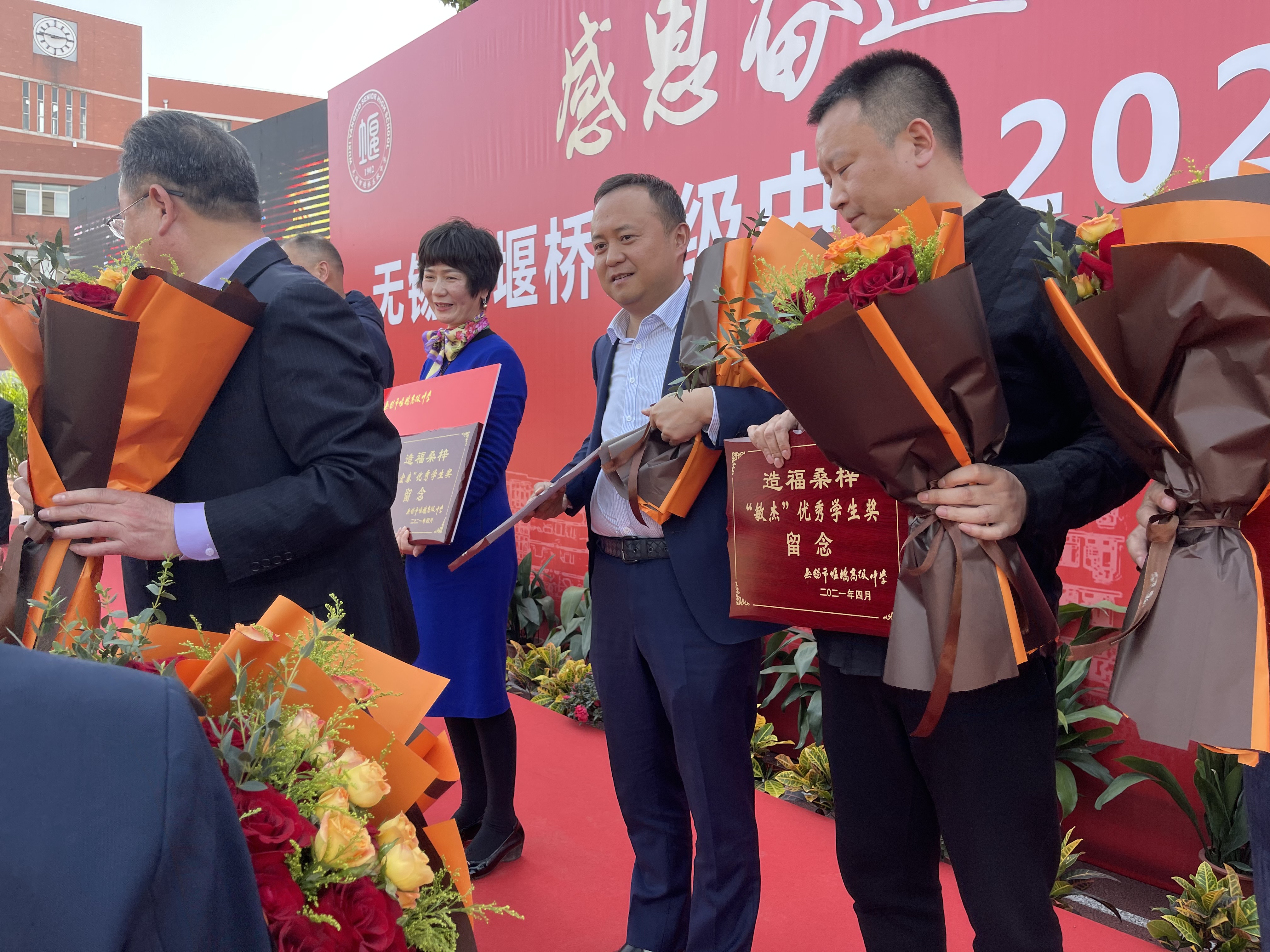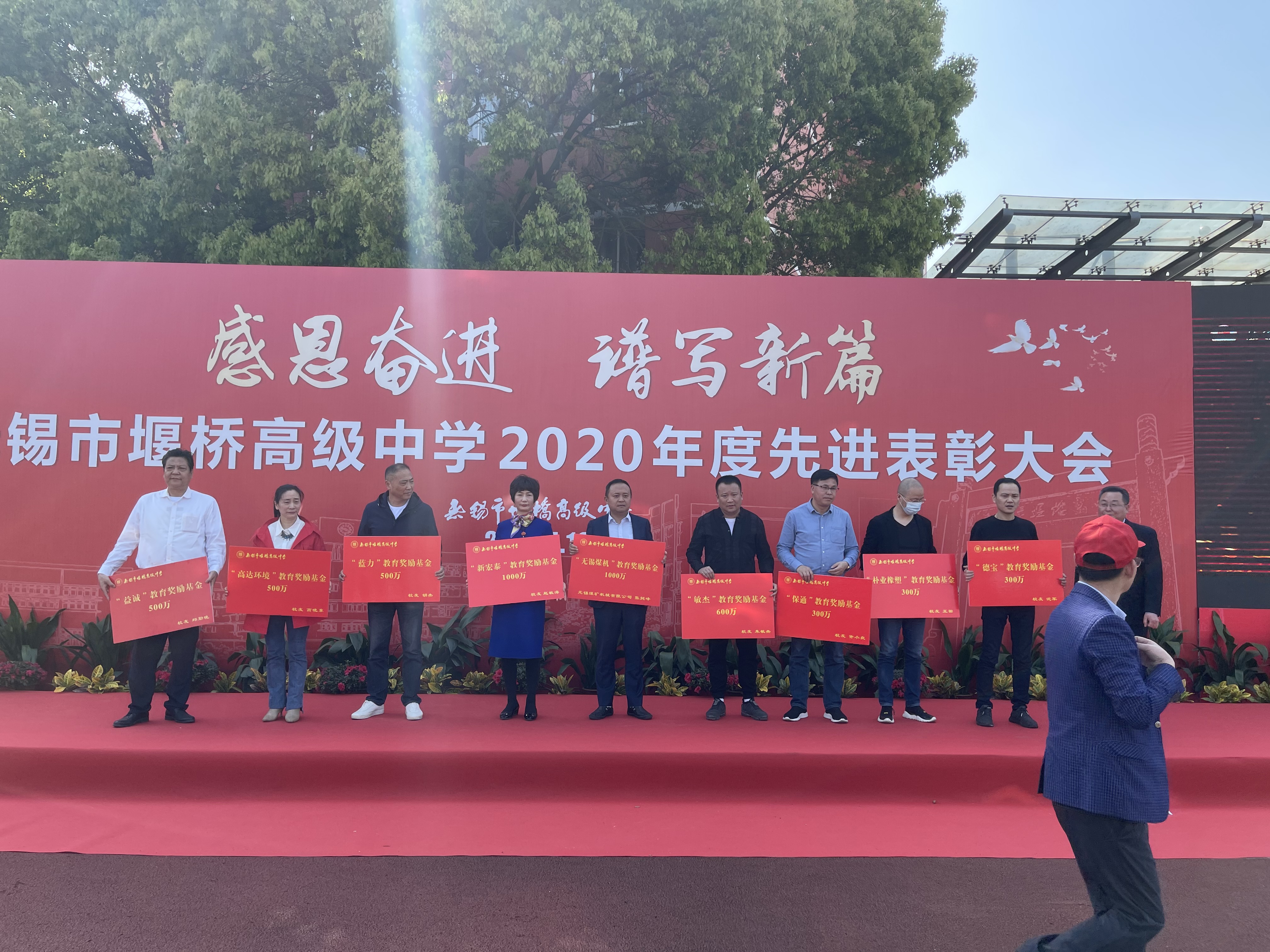 無錫市堰橋高級中學(xué)副校長陳登峰先生宣布表彰會開始,胡建秋校長致辭,并向企業(yè)家頒發(fā)獎勵基金捐贈儀式,留念牌、基金牌、鮮花。